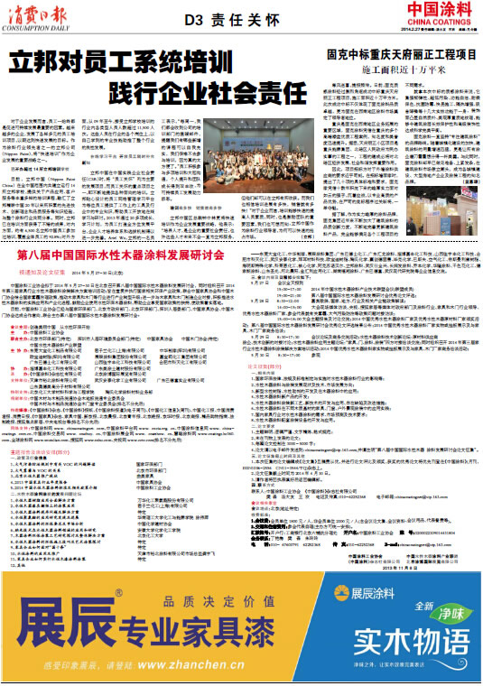 《中國涂料報》(電子版)的一切內容(包括但不限于文字、圖片、PDF、圖表、標志、標識、商標、版面設計、專欄目錄與名稱、內容分類標準以及為讀者提供的任何信息)僅供中國涂料信息網讀者閱讀、學習研究使用,未經中國涂料雜志社有限公司及/或相關權利人書面授權,任何單位及個人不得將《中國涂料報》(電子版)所登載、發布的內容用于商業性目的,包括但不限于轉載、復制、發行、制作光盤、數據庫、觸摸展示等行為方式,或將之在非本站所屬的服務器上作鏡像。否則,中國涂料雜志社有限公司將采取包括但不限于網上公示、向有關部門舉報、訴訟等一切合法手段,追究侵權者的法律責任。